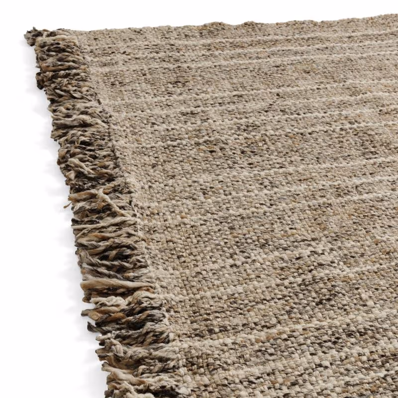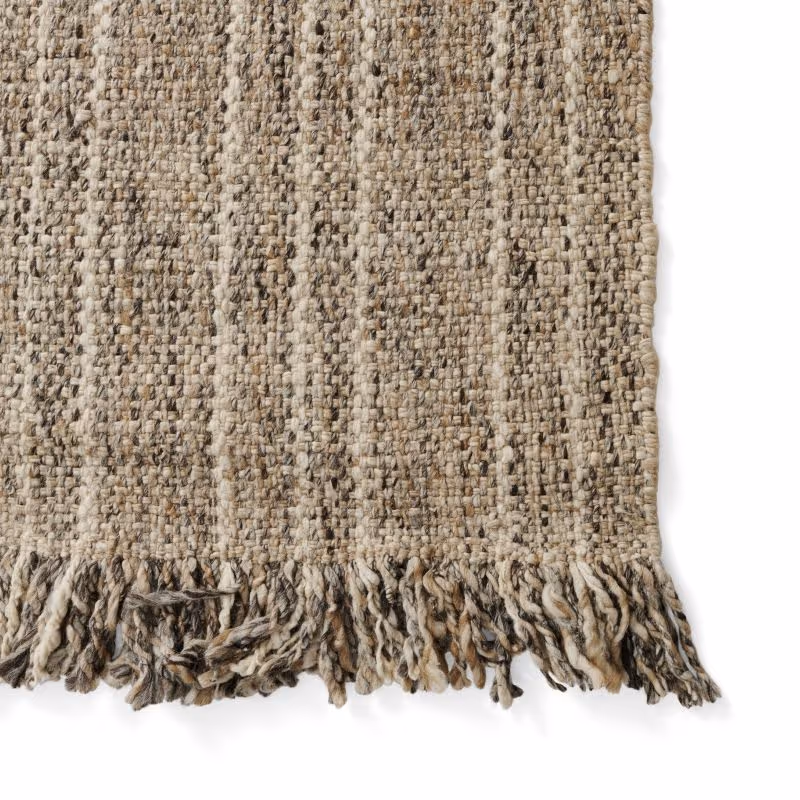 Rug no.20 is a hand-woven wool rug with a mid beige melange foundation with a soft sandy shaded stripe, creating a harmonious and delicate effect.
