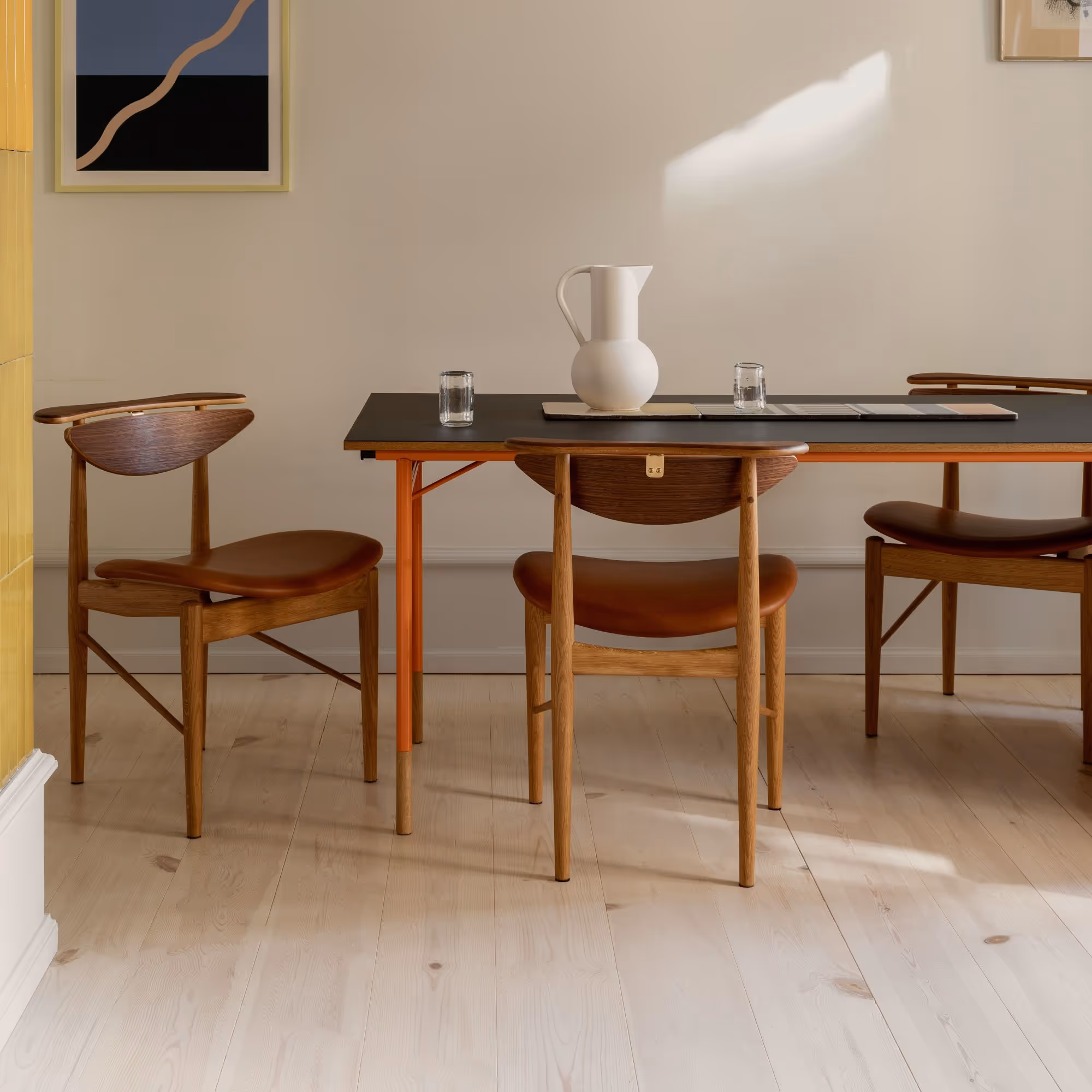 The Nyhavn Dining Table reflects Finn Juhl’s evolving dialogue with functionality and form. While earlier designs were often sculptural and exclusive, this table marked a shift — a more accessible piece that still carried Finn Juhl’s artistic sensibility. Inspired by the clean lines of American modernism, he added his own refined detailing and craftsmanship.