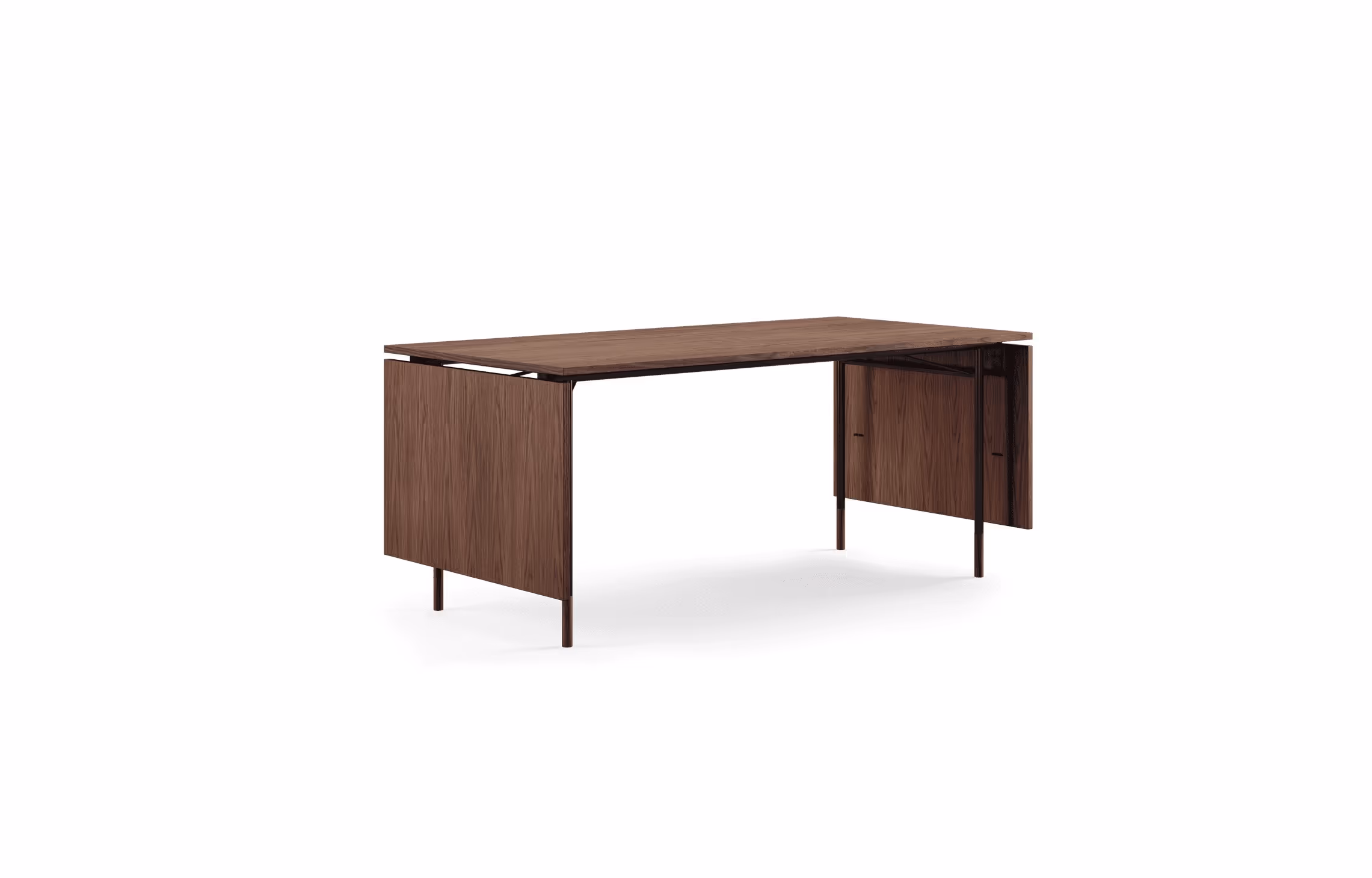 Finn Juhl’s signature sense of visual lightness carries effortlessly into the Nyhavn Dining Table — a natural evolution of his original desk design. His focus on practicality and precision is evident in the table’s refined proportions and thoughtful construction. Easy to maintain and designed to age beautifully, the table can be customized in a variety of finishes. When not in use, the extension leaves hang vertically at either end. The tabletop is available in teak, oak, walnut, Oregon pine, or linoleum in the colors ‘Black’ or ‘Mushroom’.