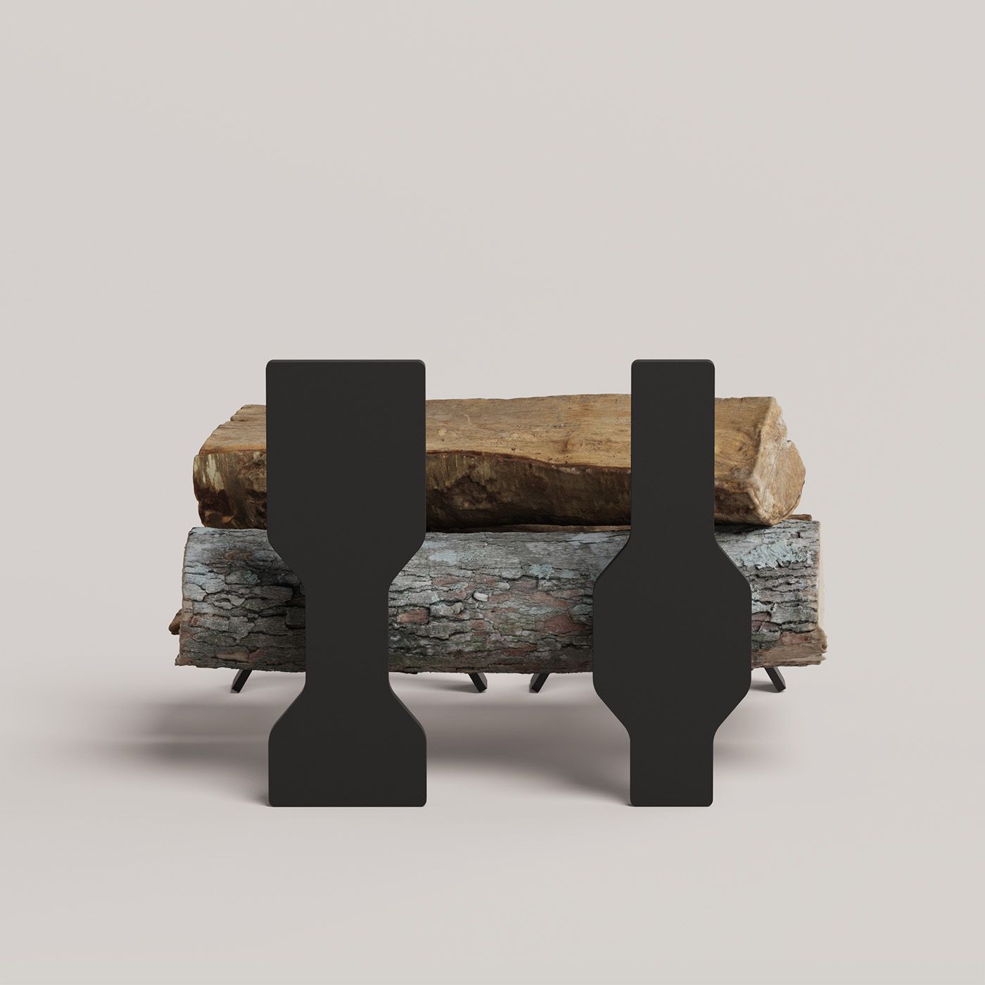 Two forms in blackened steel that stand in conversation with each other. Odo holds your logs steady as the fire takes, doing the work fire dogs have always done, but with a presence that feels considered.