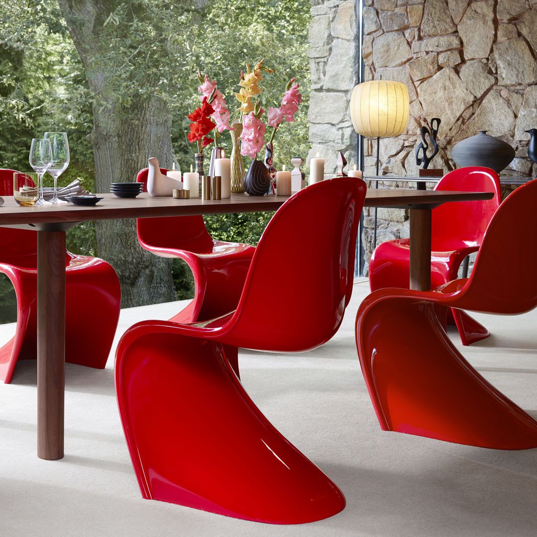 The original version of the chair with a glossy lacquer finish is still marketed today under the name Panton Chair Classic. Referring to the 50th anniversary of the Panton Chair, Marianne Panton [https://www.vitra.com/en-gb/magazine/details/please-have-a-seat] talks about living with her husband, the creation of the chair icon and the two limited editions Panton Chrome and Panton Glow from 2018.