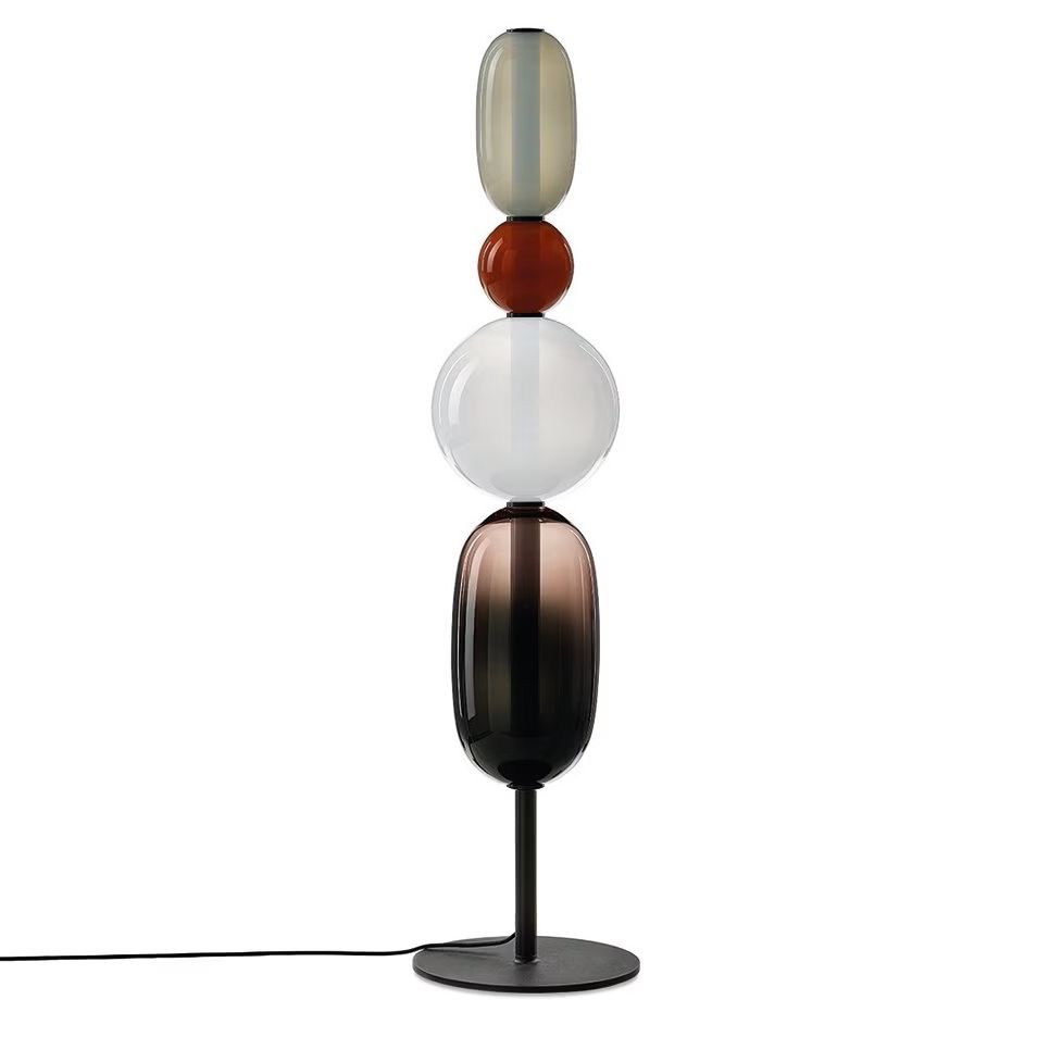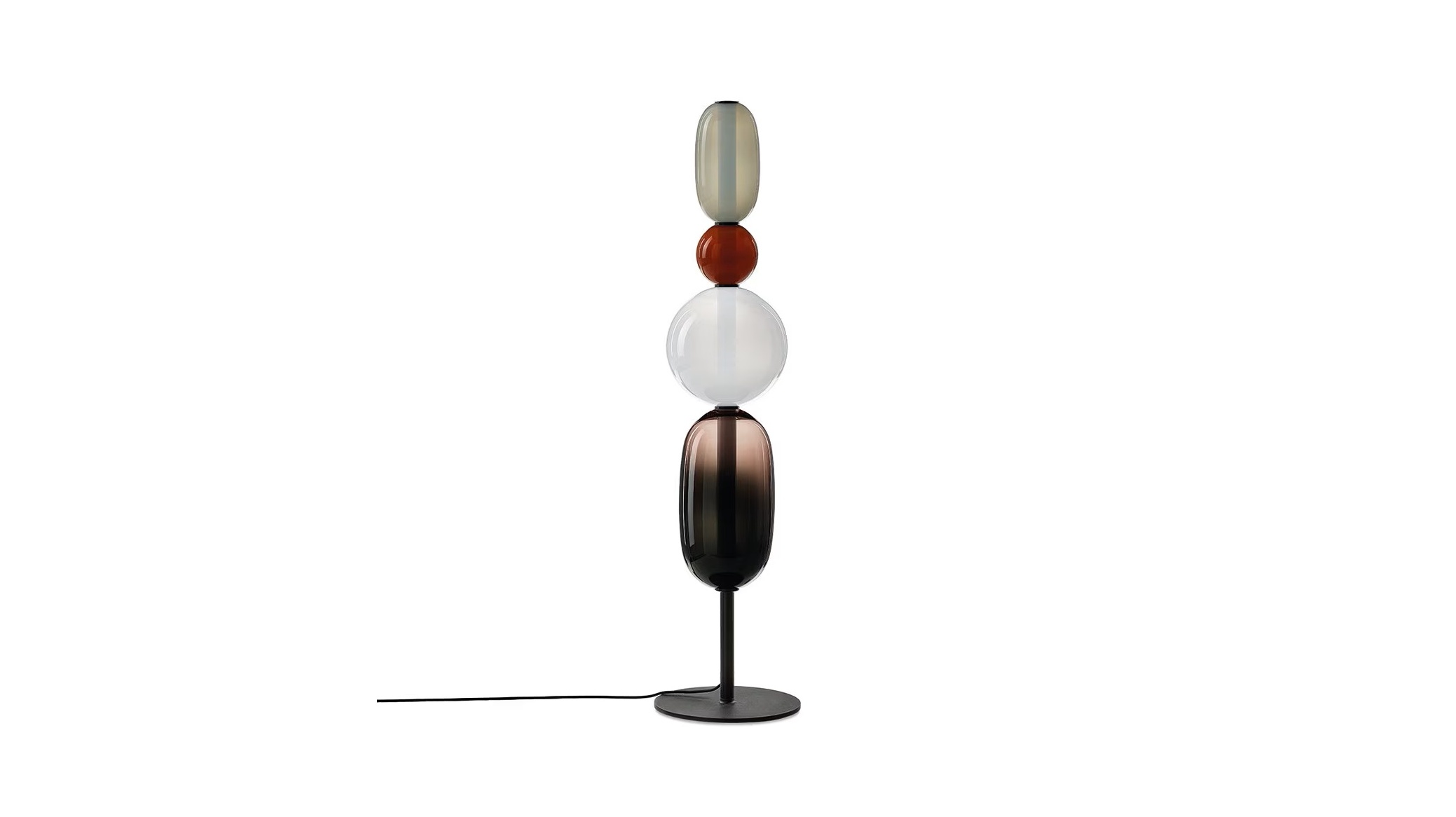 Pebbles lighting collection provides options for creating distinctive combinations. Just as with stones, the crystal components of the Pebbles Collection are absolute originals, thanks to hand-blowing. String the colorful shapes onto its inner light source as you wish and create elegant objects that transform into artworks in any interior.