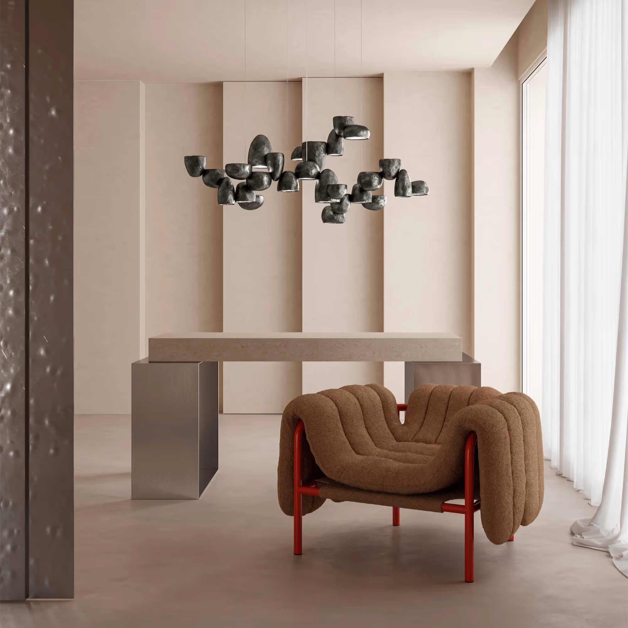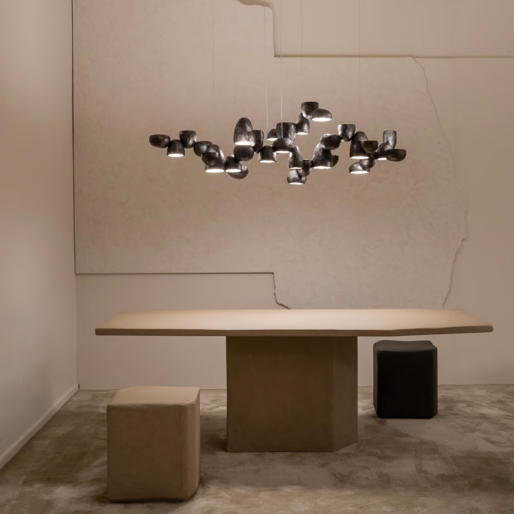 Scarabei Chandelier by Giopato & Coombes was presented during Milan Design Week 2025. The collection is inspired by natural processes and organisms that grow and evolve in constant transformation – a luminous installation where traditional craftsmanship meets experimentation with raw textures, organic forms, and materials.