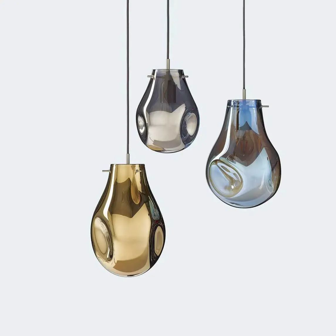 Varied colors, transparency and continuously changing shapes – the characteristic features of soap bubbles–inspired this BOMMA collection. When lighted, the metallic sheen of its surface transforms to iridescent and translucent, exposing its crystal character. The entire collection is produced using the technique of hand-blowing without a form. The seemingly perfect droplet of molten glass is given a unique shape, as well as a unique color spectrum.