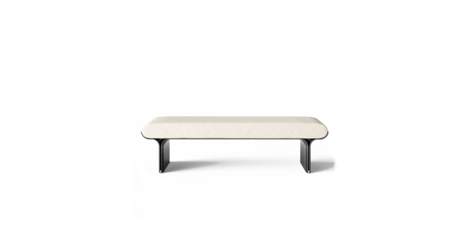 Bench with curved black open pore stained ash base and bright brass details. Also available opaque lacquered wooden version in the colours "Bianco Camargue", "Sabbia del Nilo, "Rosa Jaipur", “Rosso Persia”, "Bordeaux Etruria", "Verde Provenza", "Blu Pacifico", “Grigio Londra”, “Nero Giza”. Cushion in polyurethane foam covered by fabric or leather as per samples. Removable cover. Additional stitching is required for elements with leather upholstery compared to elements with fabric upholstery.