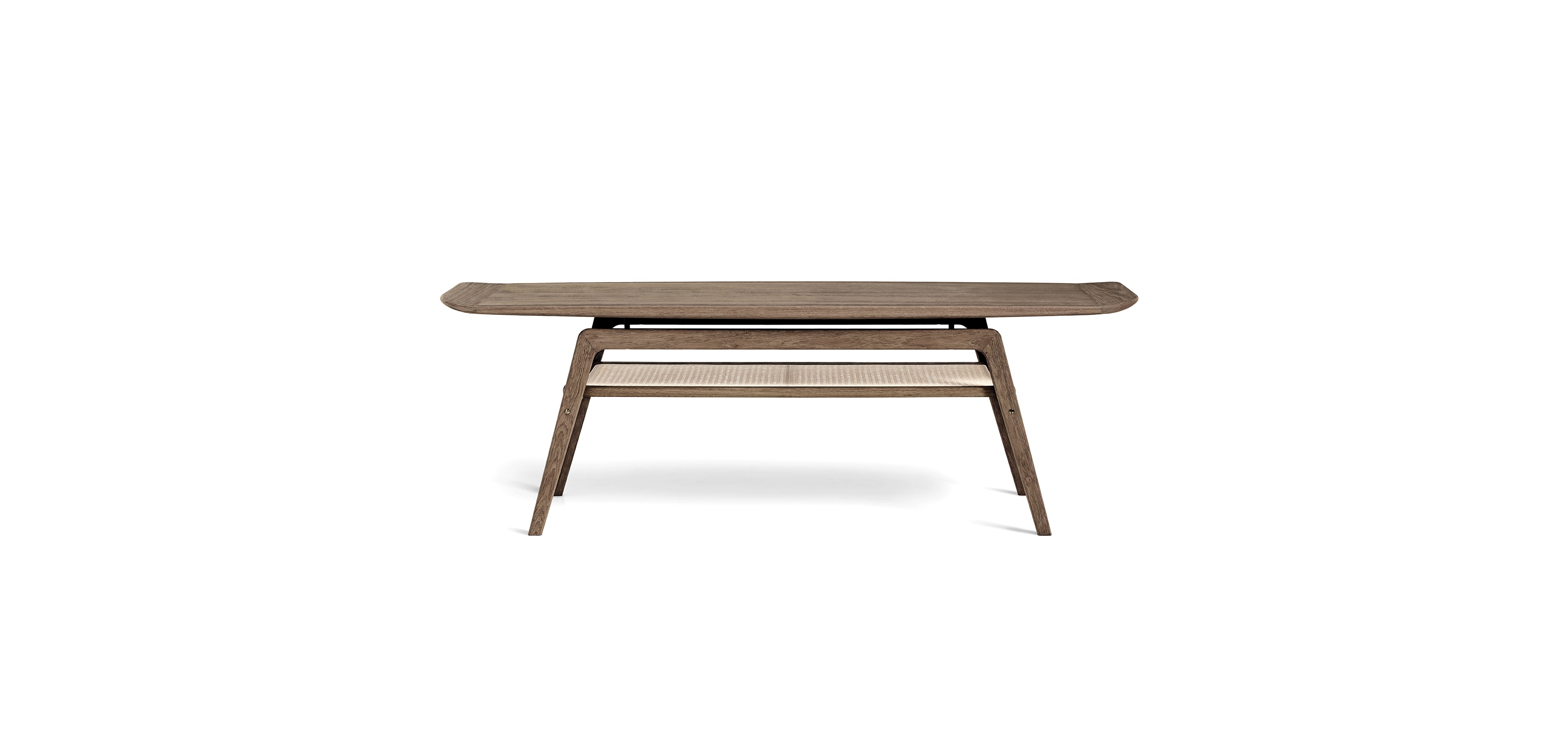 The coffee table is also available with an elegant shelf in solid wood and French wicker, which adds an extra dimension to the iconic design, which has been known as the Surfboard from the very beginning.