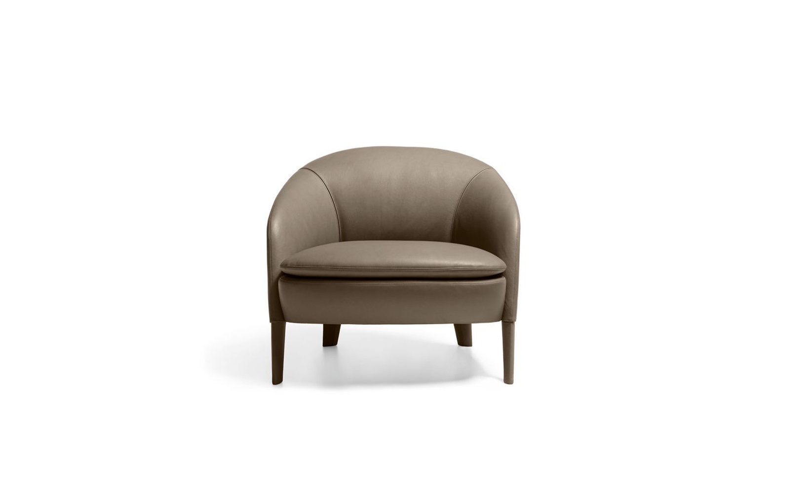 The back and arms are designed as a continuum that embraces both the sitter and the comfy seat with its additional little loose cushion. The frame ends with four slender legs covered in the leather variants of the Molteni & C range.