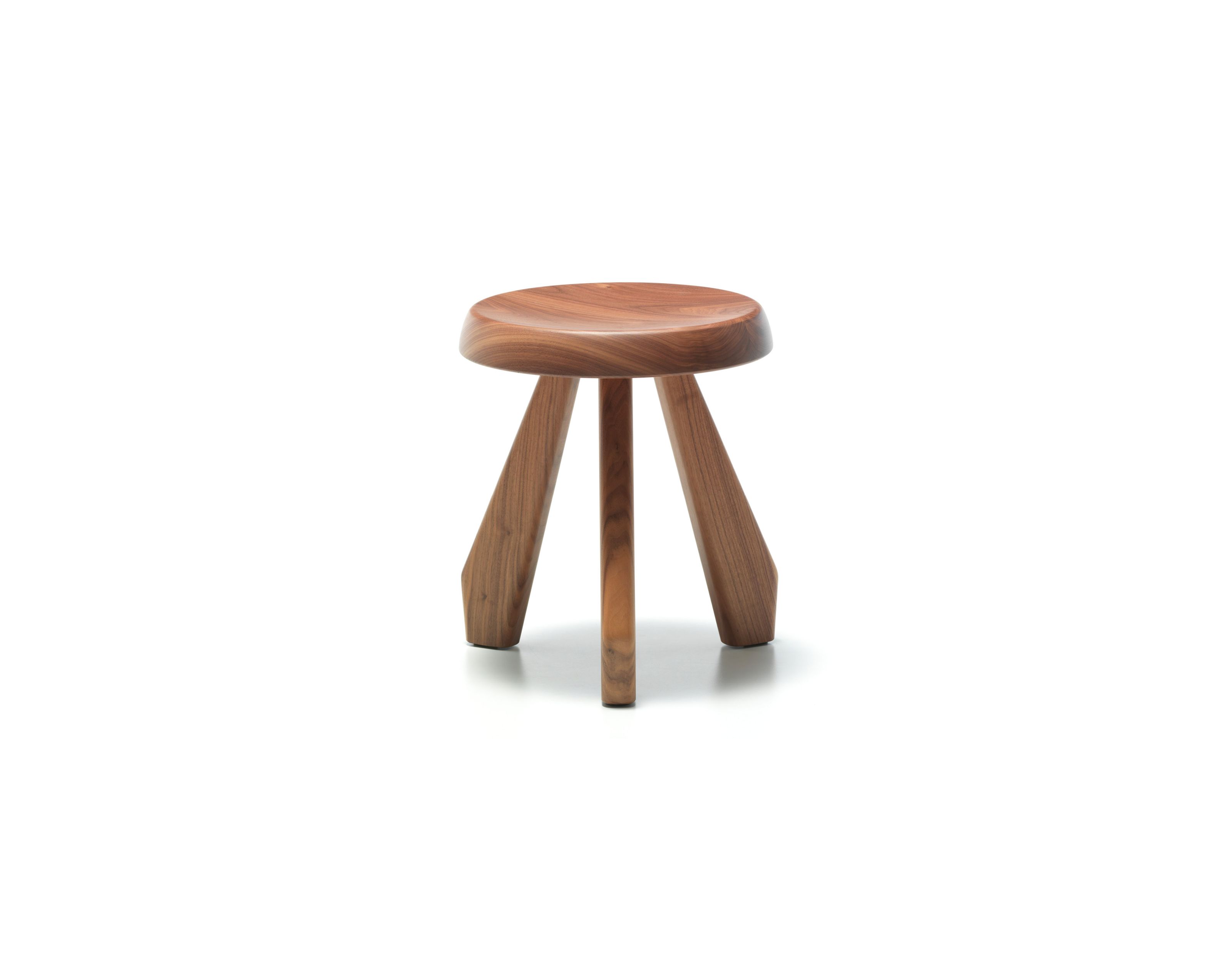 Reclaiming simple materials and basic shapes, with an eye to architecture and mountain life, led to the creation of two historic design low table-stools inspired respectively by the milking stool used by mountain shepherds in the French town much loved by the author.