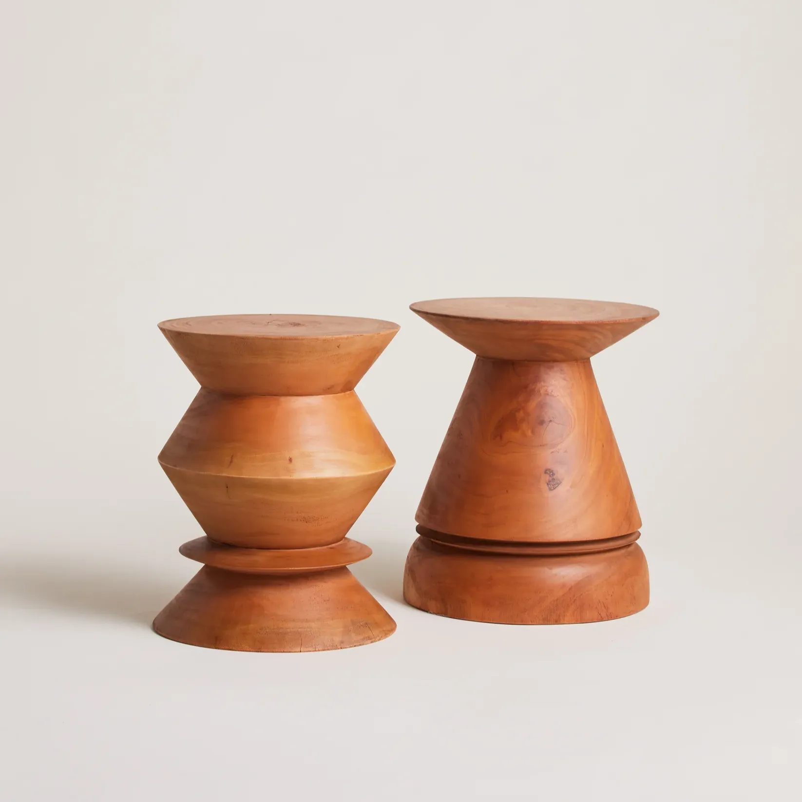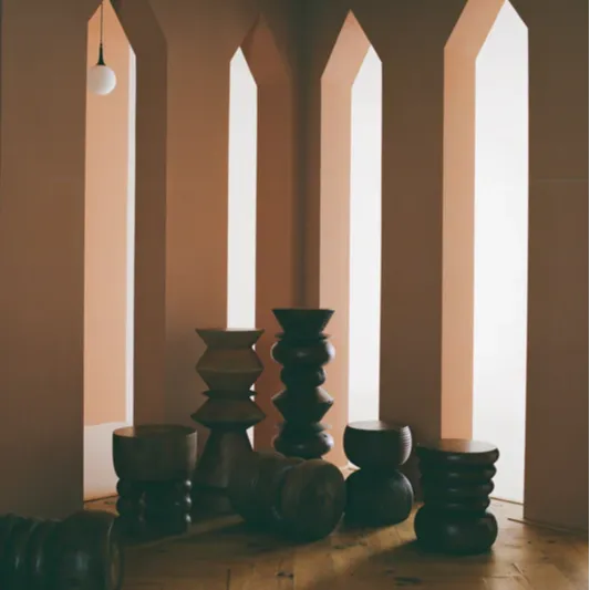 The TITI Stool is a hand-carved teak wood piece that plays with sharp and unexpected geometries and balances between a practical surface and a sculptural focal point.