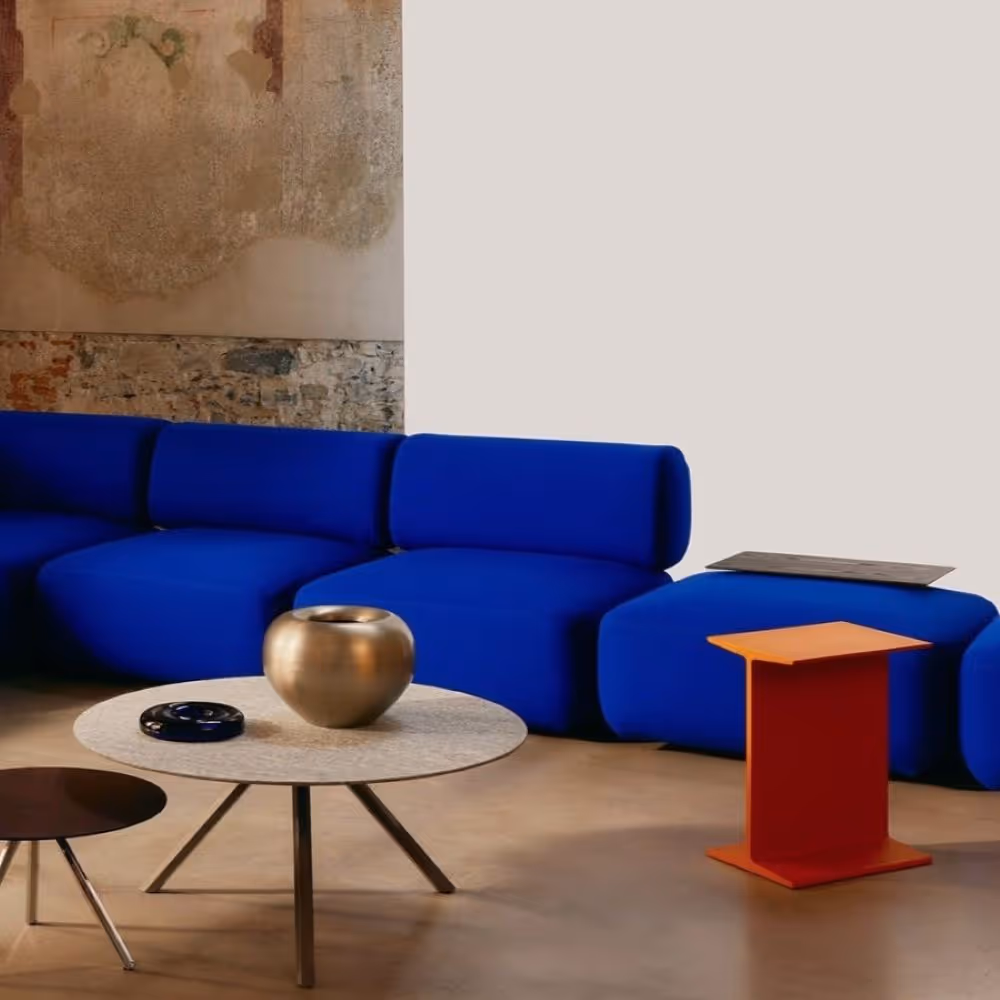 The shape of the beam, which inspires the Italia side table/stool, is not only a reference to structural solidity but also a tribute to the DNA of industrial design that has always distinguished our brand.