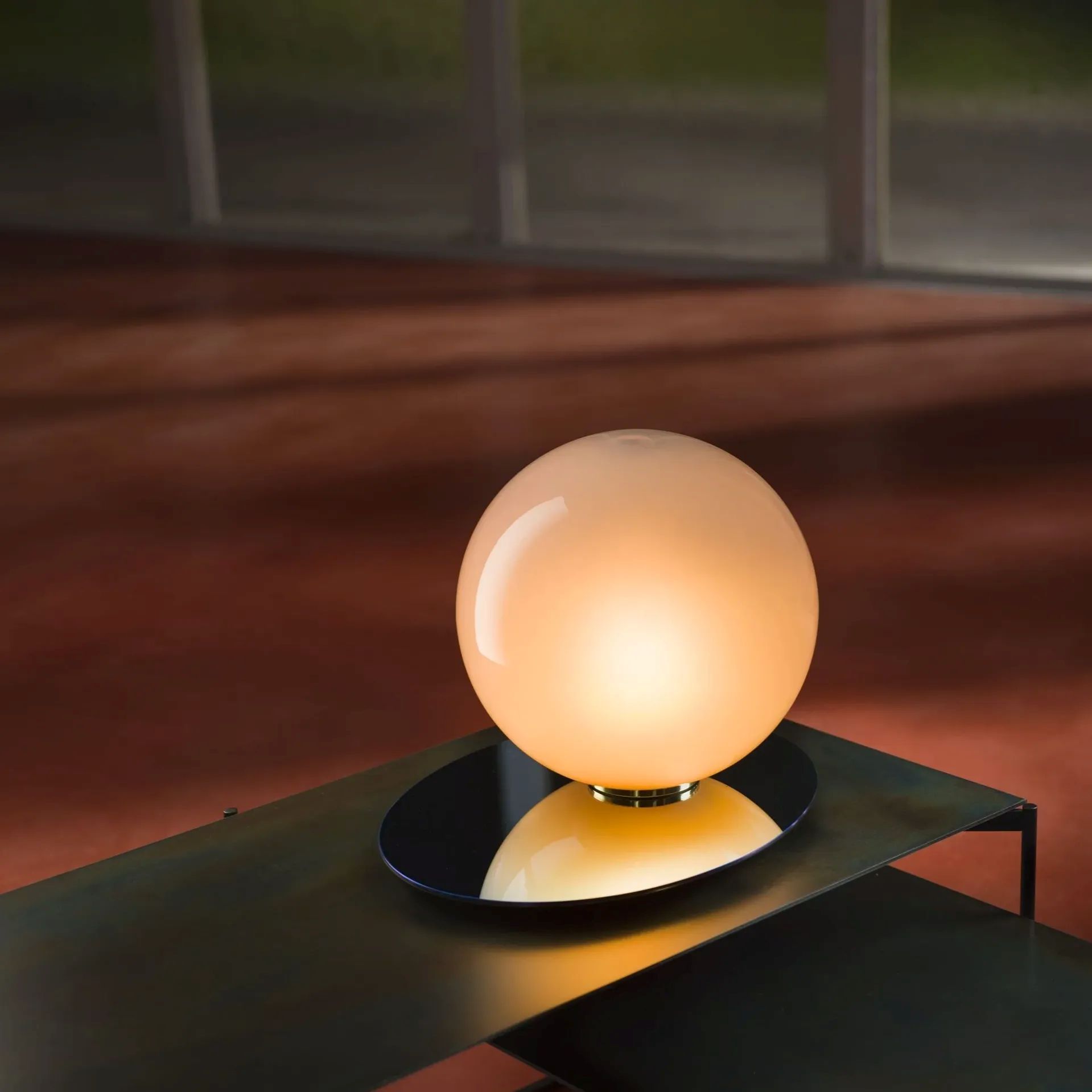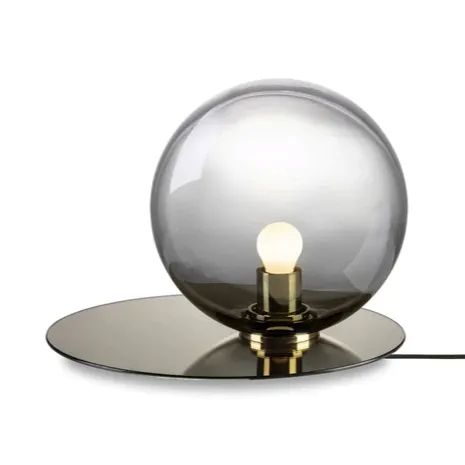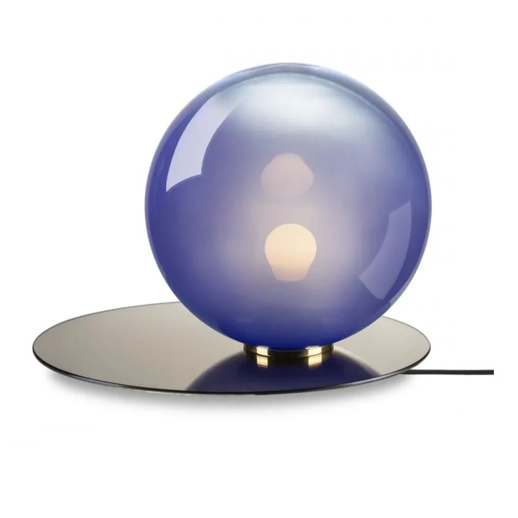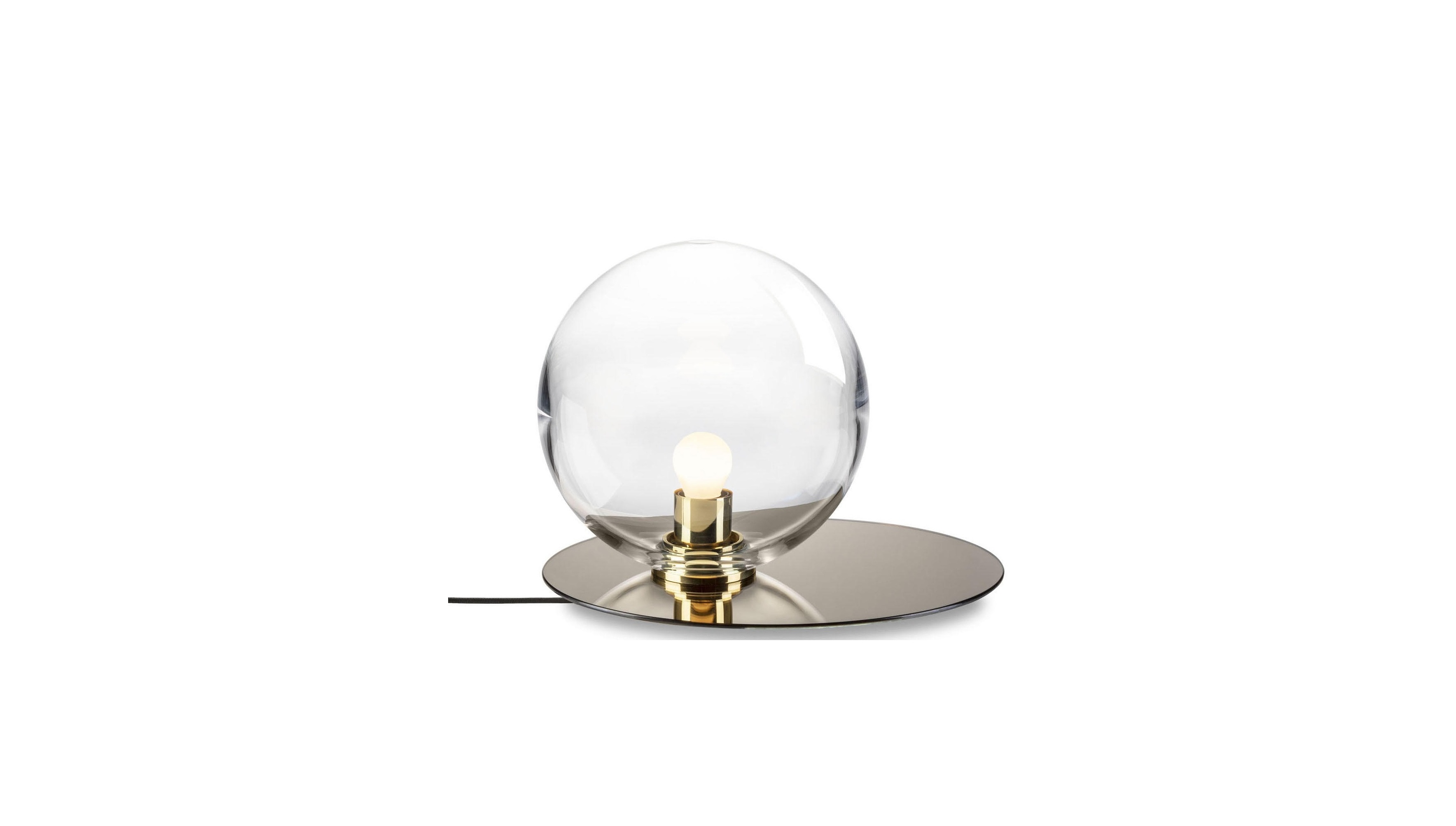 Every detail of this lighting collection embodies the relation of geometric objects and their shadows with sophisticated elegance. Its metal plate derives from the perfectly elliptical shadow cast by a crystal ball and mirrors the refined color scheme of the mouth-blown piece.