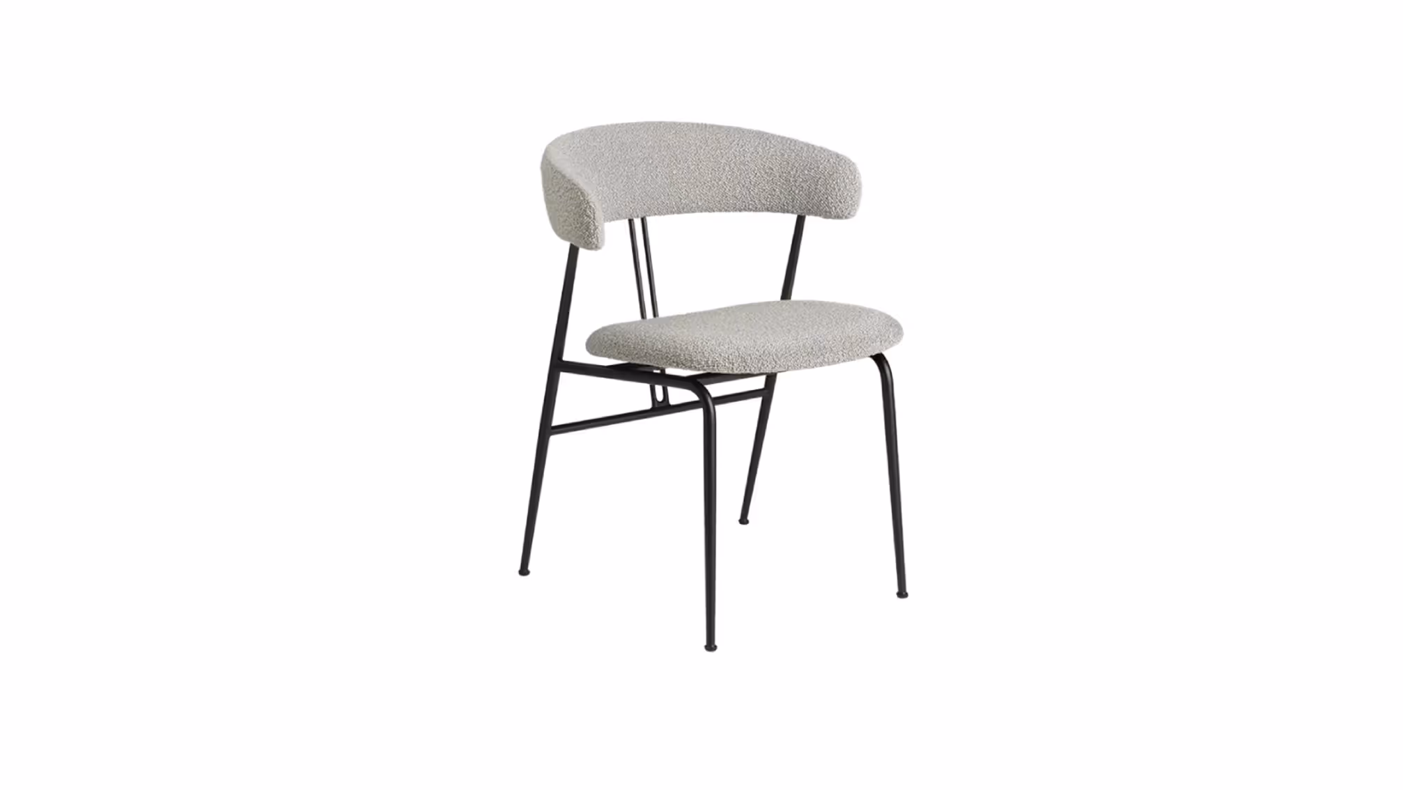 Two parallel lines extending from the backrest echo the strings of a violin, while also providing essential support. Elegant flourishes of detail, such as the gentle curves where the lines meet the horizontal bar, give the chair a refined but unmistakable character, where the classical counterpoints the contemporary. The gently tapering, powder-coated steel legs support a generous seat and an embracing half-arm backrest, designed such that the chair may be used both as a dining chair or an armchair, without compromising on comfort in either setting.