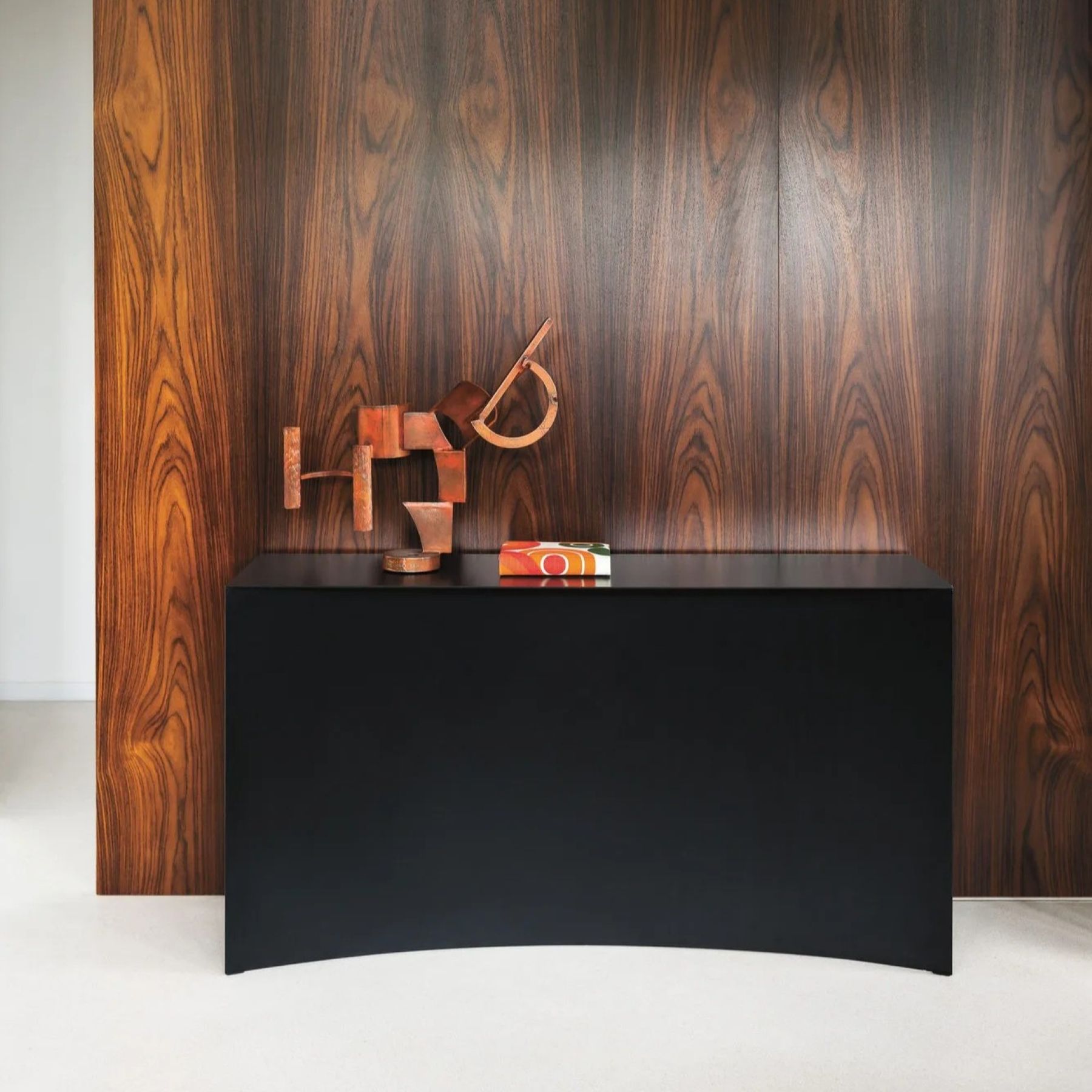 This subtle act of subtraction translates into a strong impact, thanks to the curvature of the base that defines a space capable of altering the visual perception of objects.