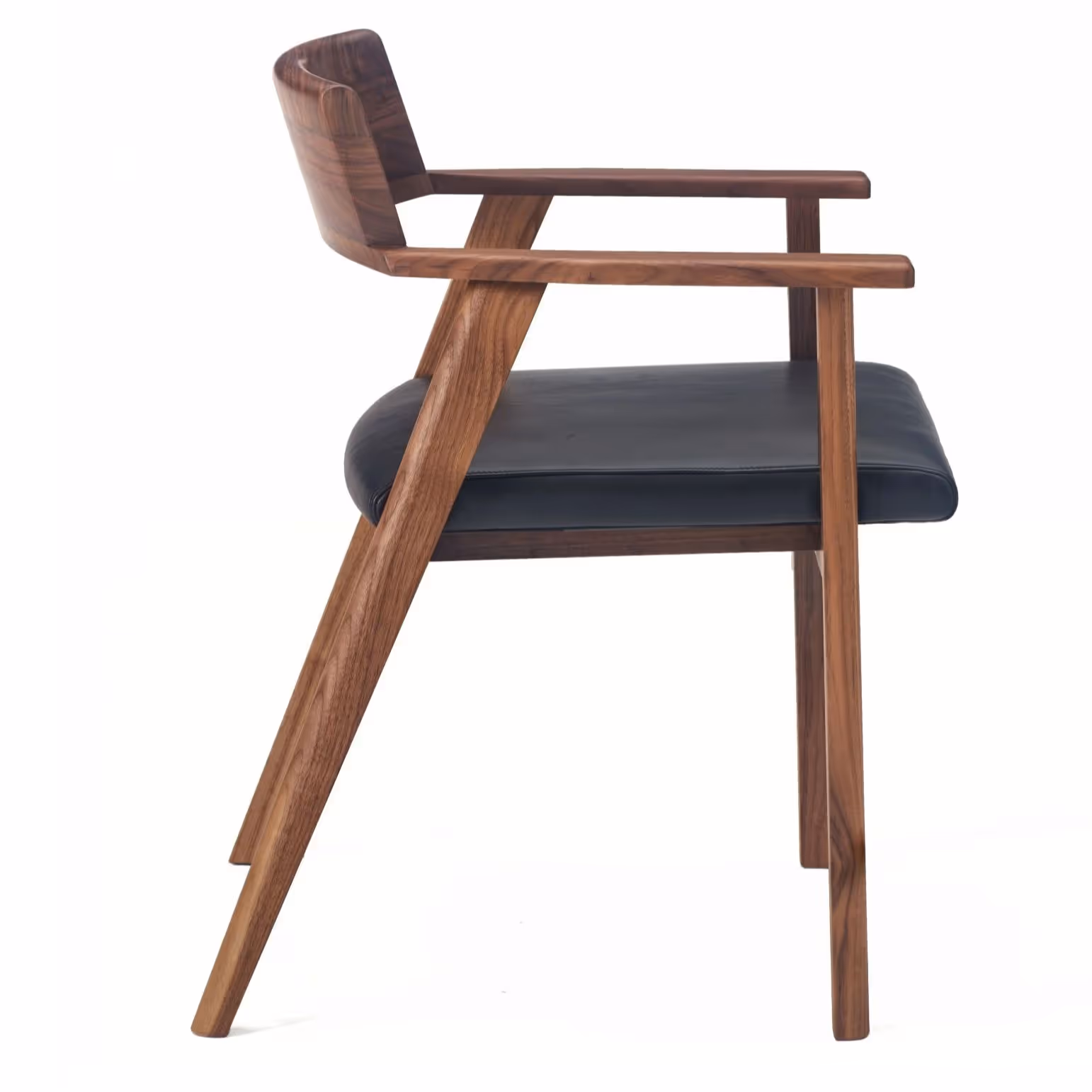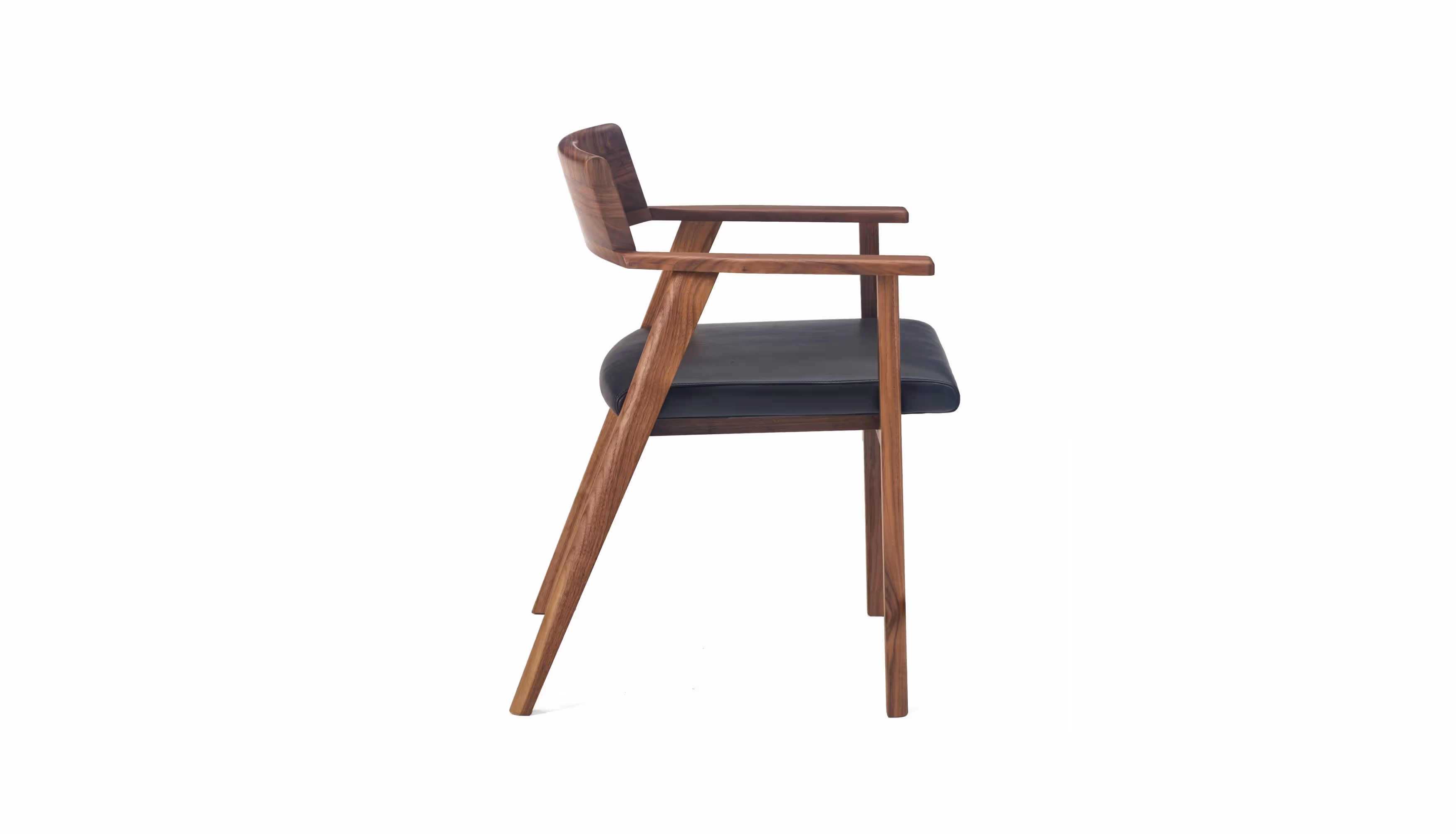 The backrest is a key architectural aspect – cantilevered and supported by thin wooden armrests sculpted to be wider at the front for function and tapered away to as little as possible behind. To achieve the elements of negative space and lightness we wanted, we embedded a steel support in the armrest and backrest.